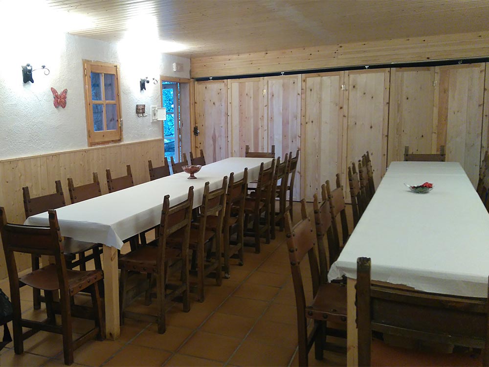 Tenim salons interiors de diferents capacitats des de 20 a 120 persones amb barbacoa interior, nevera i calefacció.